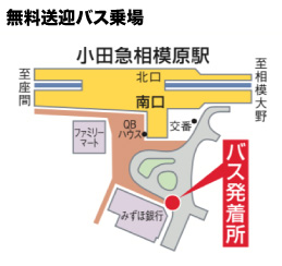 小田急線「相武台前駅」よりタクシーをご利用ください。霊苑ご見学の方に限り、料金は現地にて領収書と引き換えにお支払いいたします。